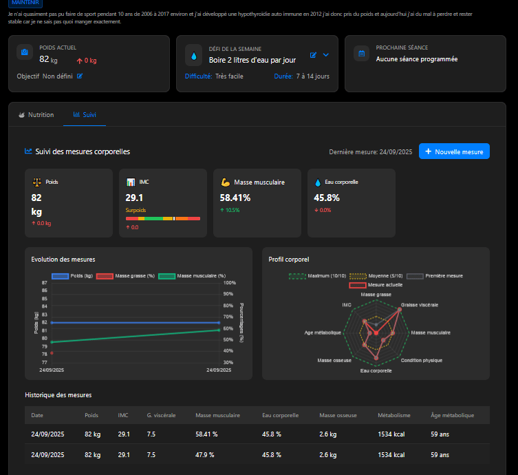 Analyse de votre composition corporelle, votre mode de vie et condition physique